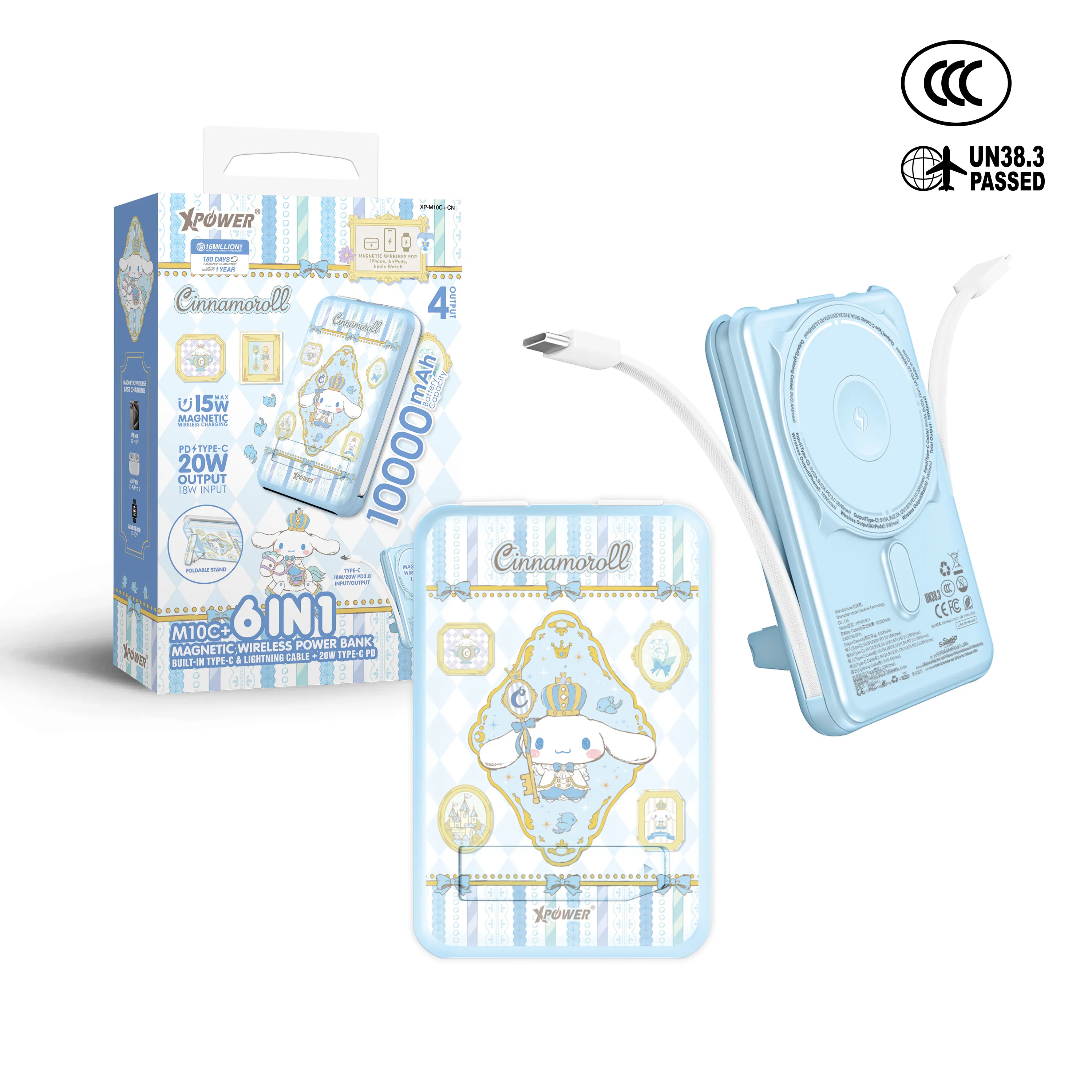 (預訂產品)(3C認證)CinnamorollM10C+ 6合1 10000mAh 多功能迷你20W PD3.0+ 磁吸無線快充移動電源