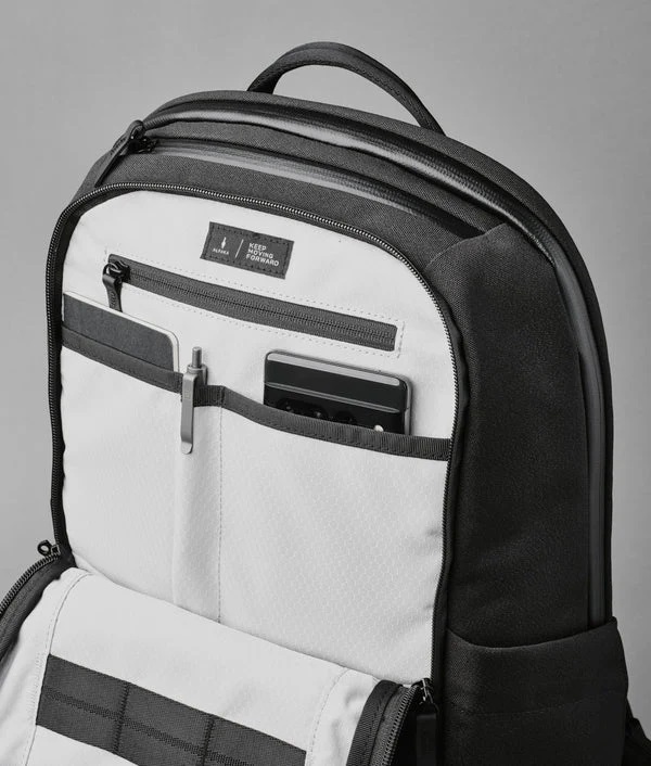・大容量與多功能:背包總容量 26L,內部設有筆記型電腦專用隔層(適合 16 吋筆電),還有管理面板、隱藏式前袋與快速存取頂部口袋,方便分類儲存物品。
