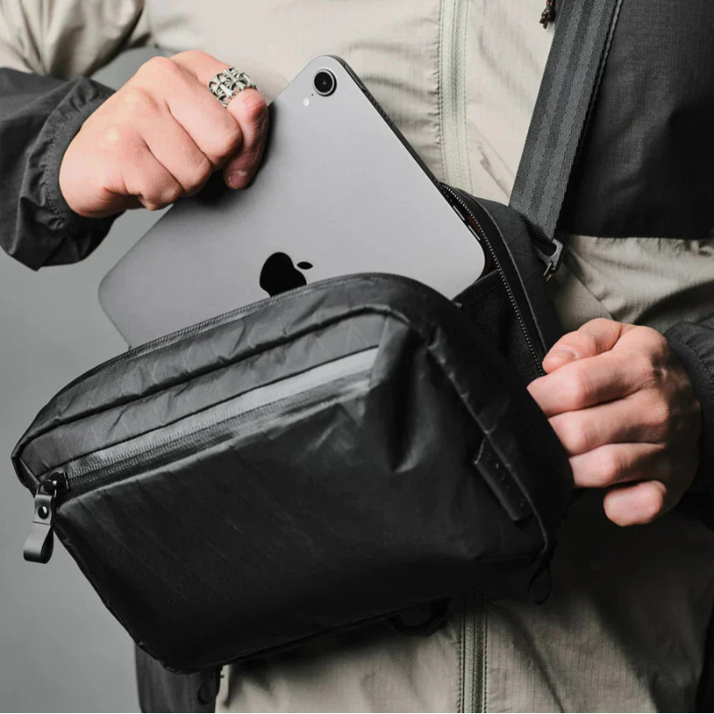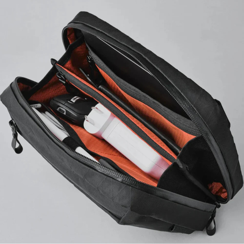 ・全天候防護: 採用 X-Pac® VX21 防風雨材質,搭配 YKK 防水靜音拉鍊,確保物品安全。