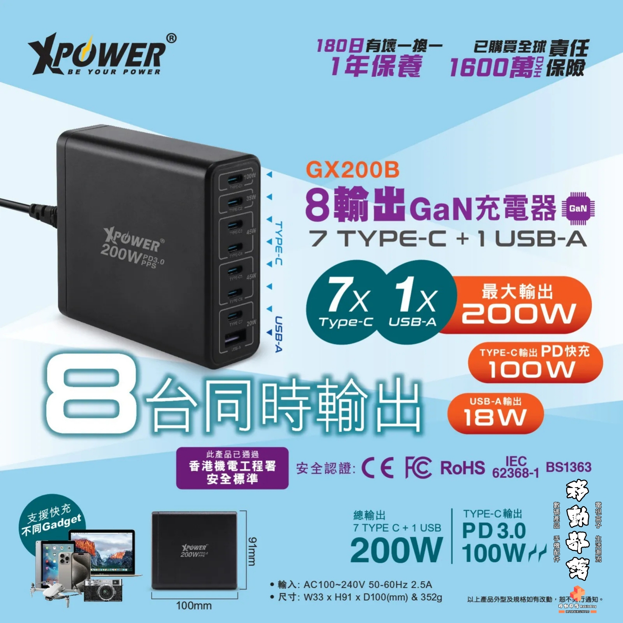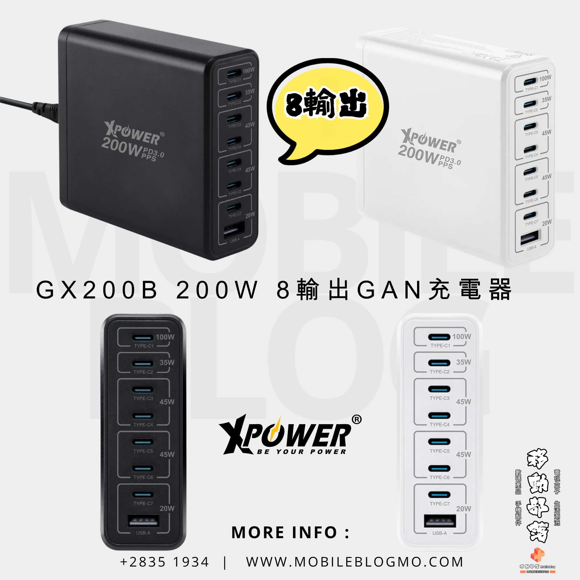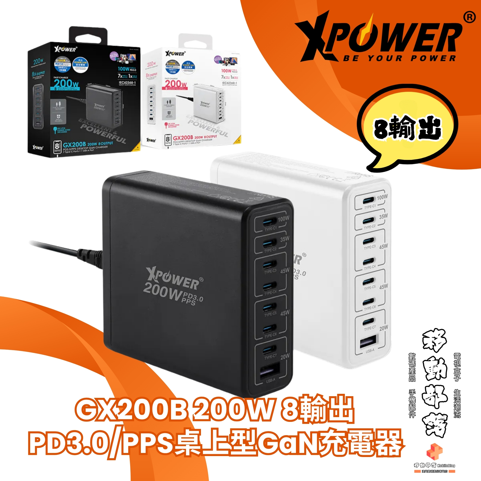 XPower GX200B 200W 8輸出 PD3.0/PPS 桌上型GaN充電器