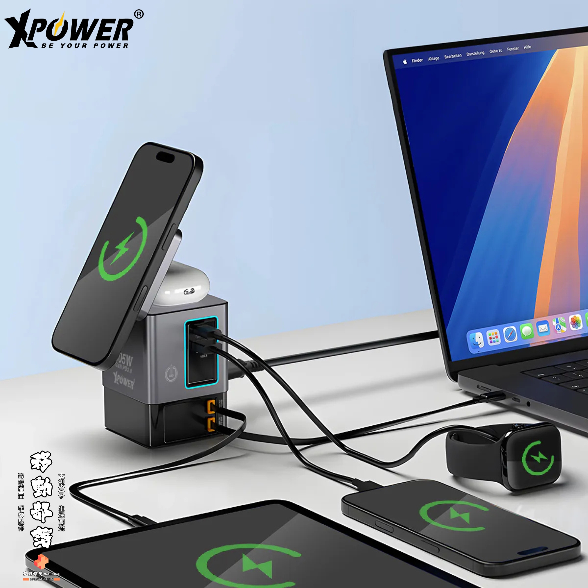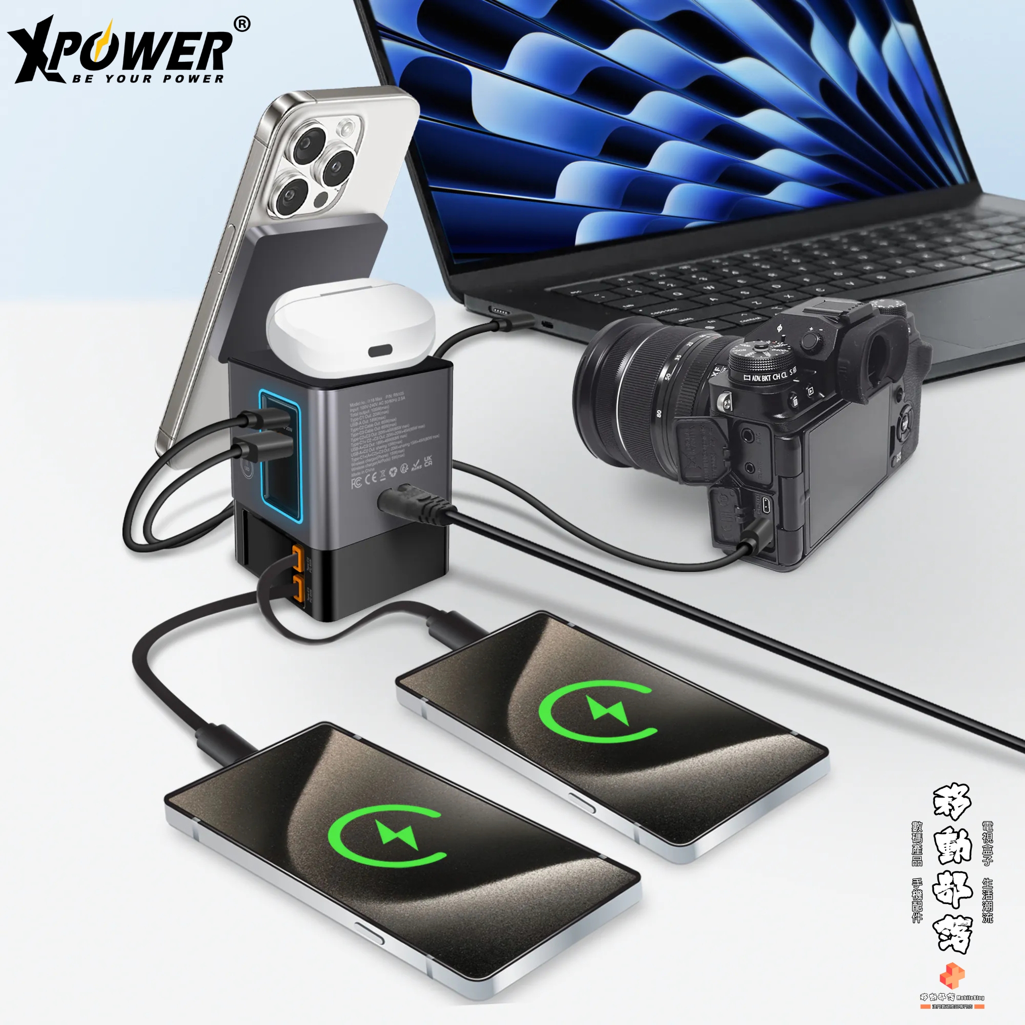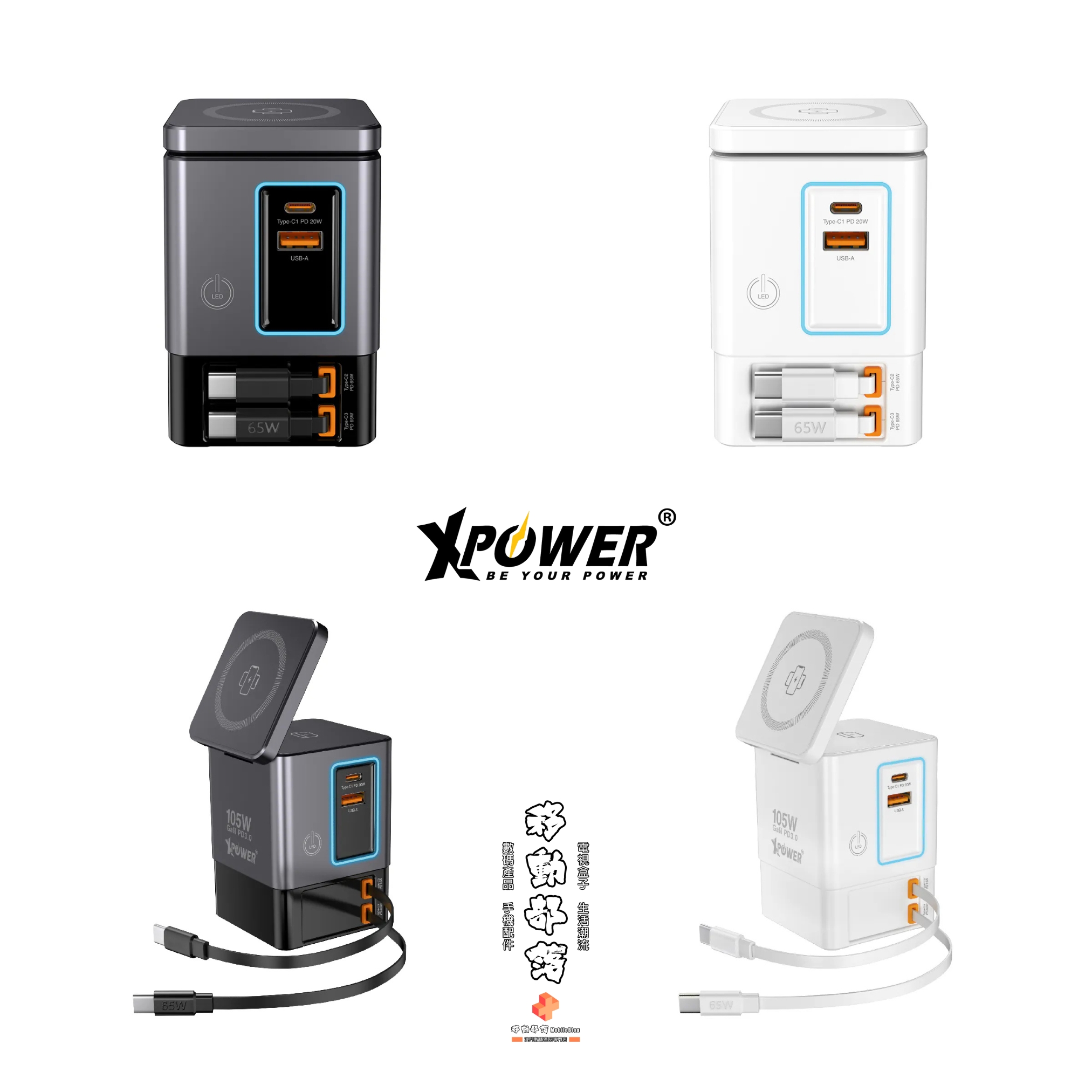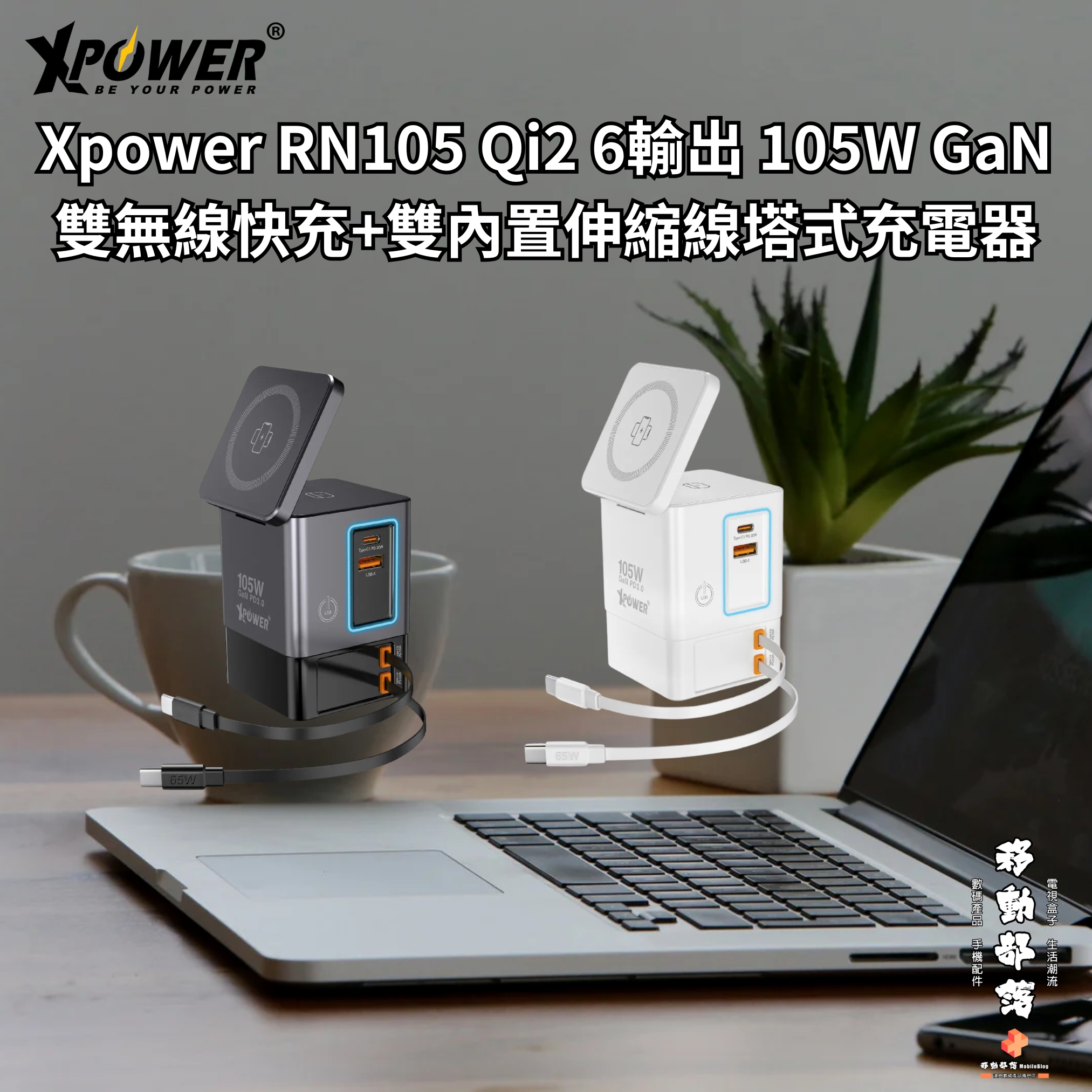 XPower RN105 Qi2 6輸出 105W GaN 雙無線快充+雙內置伸縮線塔式充電器
