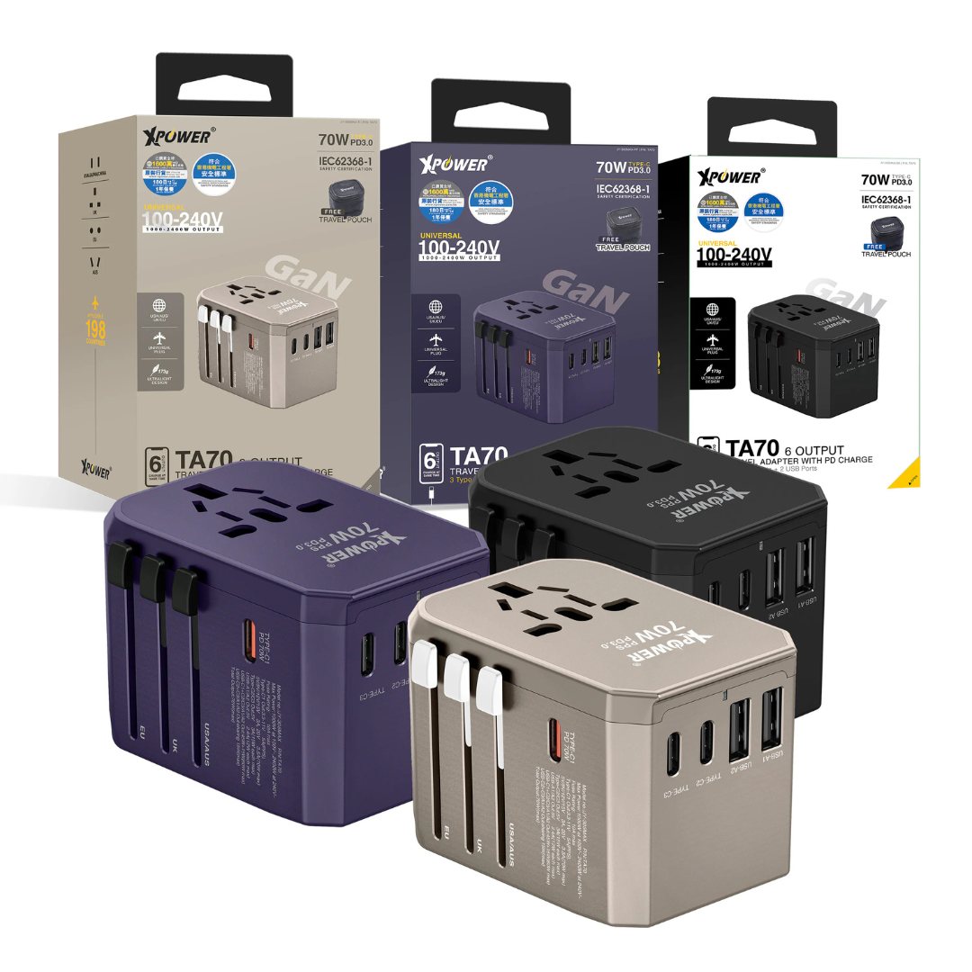 XPower TA70 6輸出PD/PPS 70W Gan旅行充電器