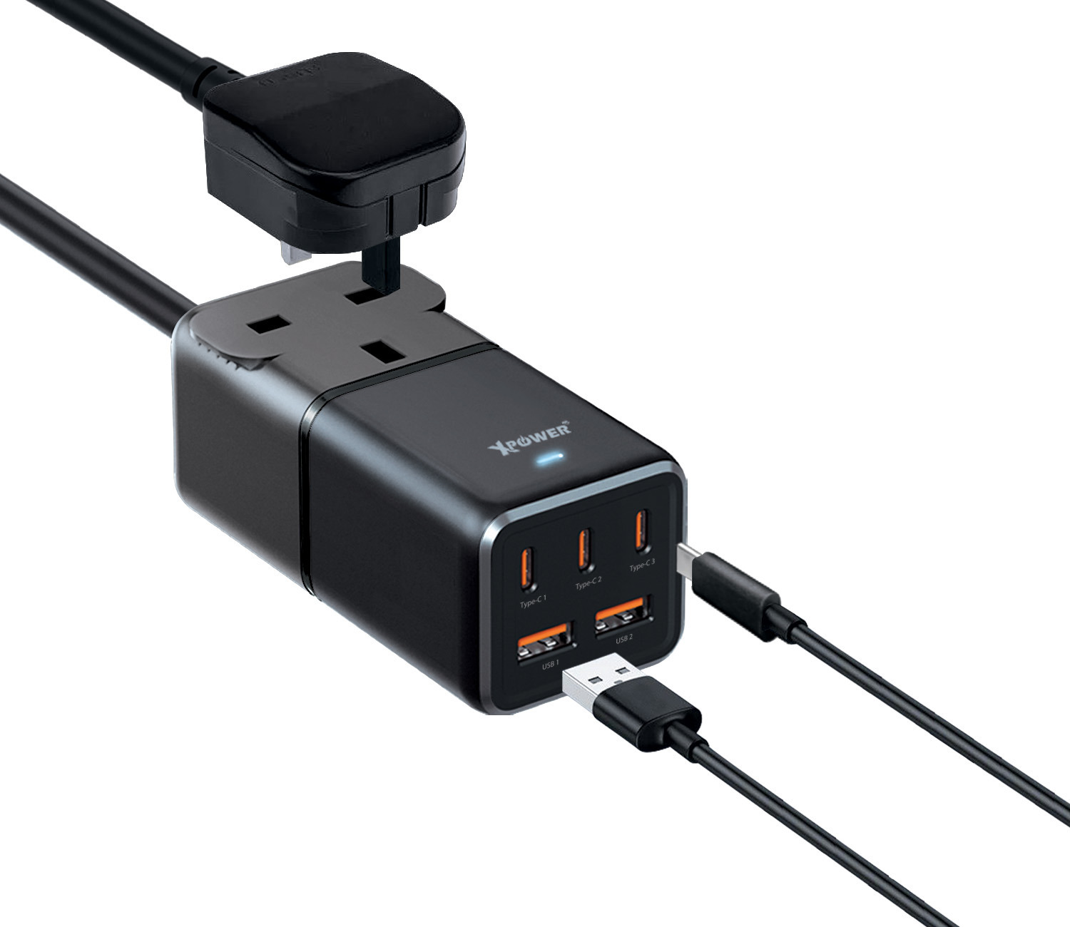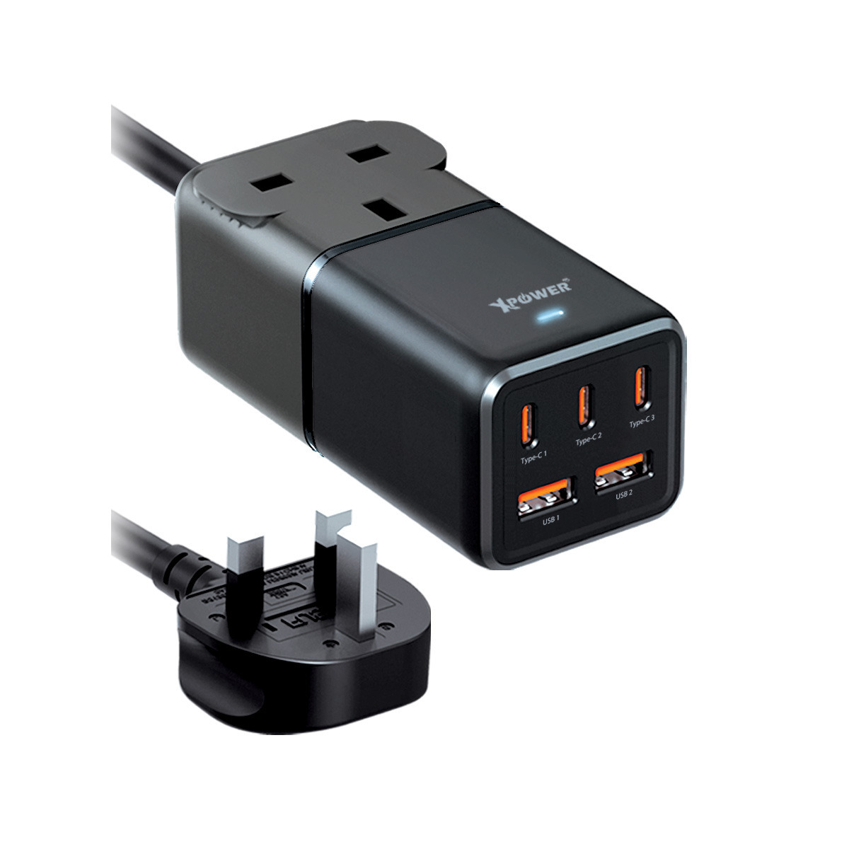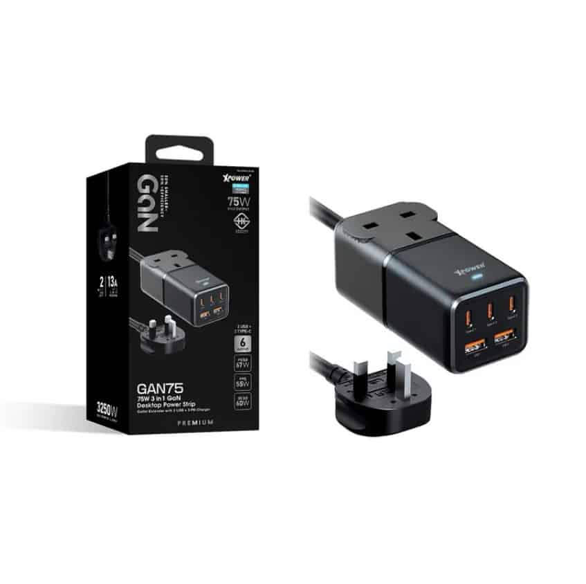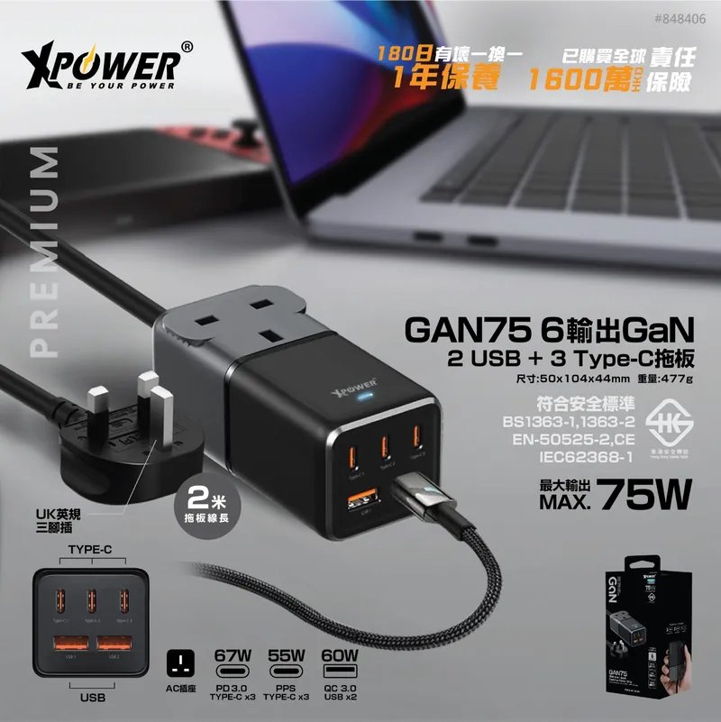 Xpower GAN75 6輸出75W Type-C +USB 一頭拖板