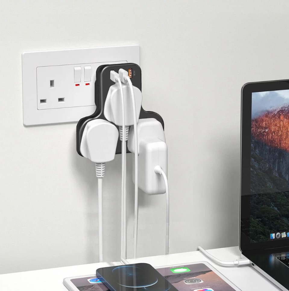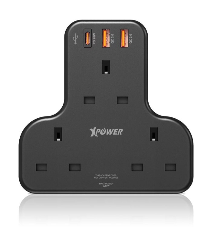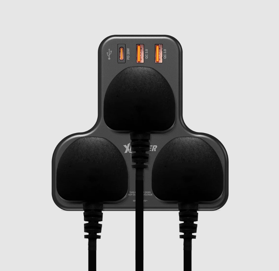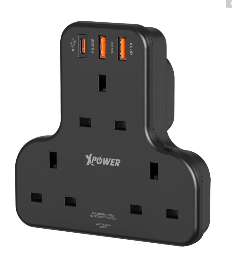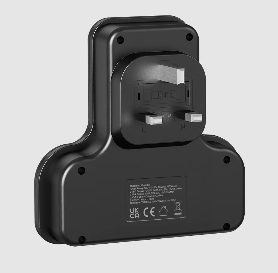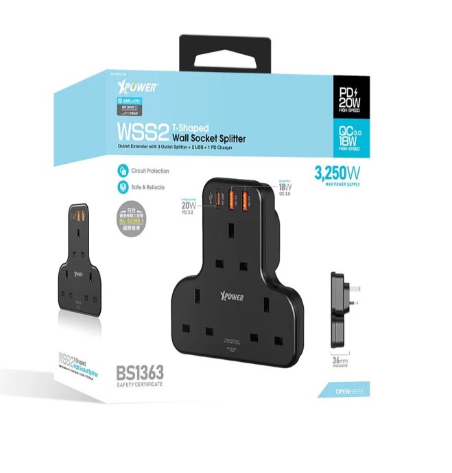 產品詳細: •設有三個插頭位置、一個Type-C插頭及兩個USB插頭 •功率:最大13A, 110-250V, 50/60Hz, 3250W •支援Type-C PD 20W / USB QC 18W輸出 •內置13A保險絲及電路保護,安全可靠 •符合安全憑證:BS1363 •符合香港機電工程署 IEC 62368-1國際標準 •尺寸:117x117x60mm & 174g