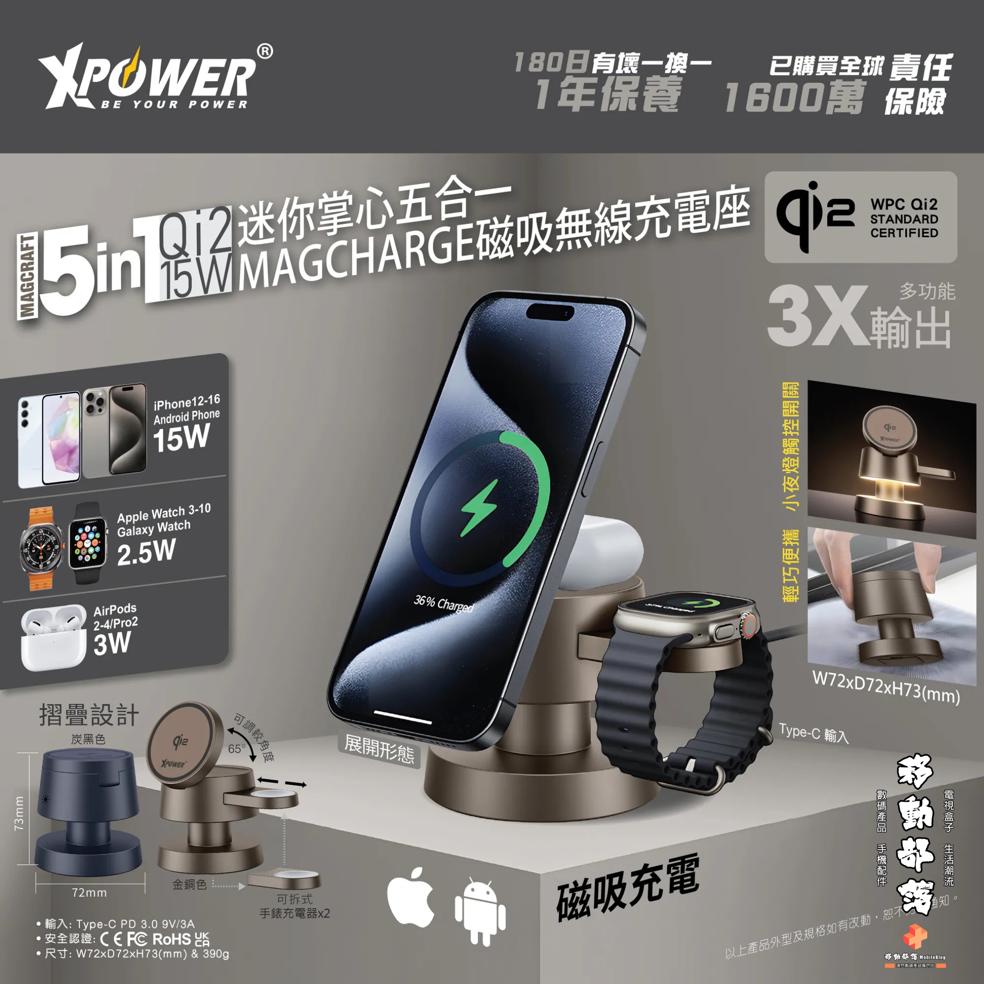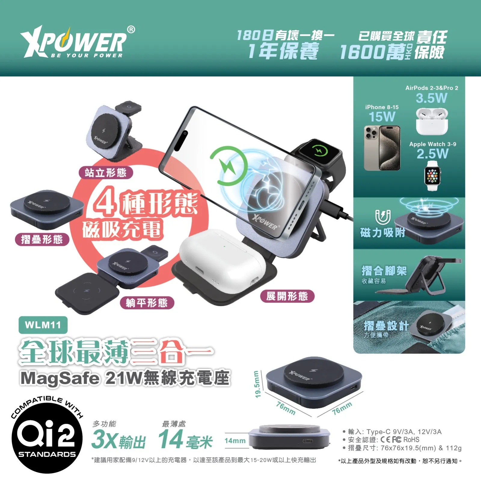 XPower LA1 萬用手提電腦充電器 XPower RN105 Qi2 6輸出 105W GaN 雙無線快充+雙內置伸縮線塔式充電器 XPower WLM11QI2 3合1 MagSafe 21W無線充電座 XPower MAGCRAFT 5合1 Qi2 15W MagCharge磁吸無線充電座 XPower TA45B 6輸出 45W PD/PPSGaN旅行充電器 XPower MAGCHILL 3in1 Qi2 15W 半導體制冷MagCharge冰冷磁吸無線充電座 BOUNDARY SUPPLY Rennen Sling|輕量防水X-Pac 側肩包 XPower MF240 1.2M 磁吸收納 4合1鋅合金 240W高速傳輸充電線