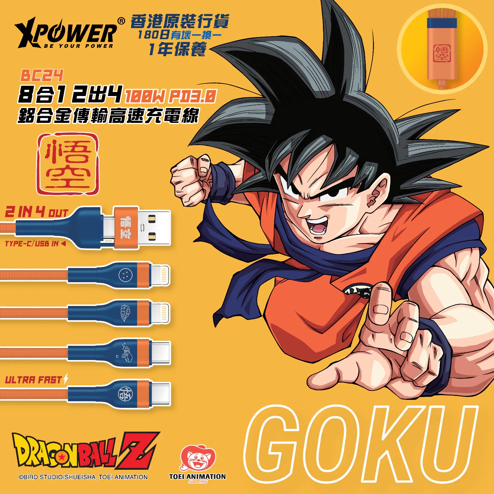 XPower x 龍珠Z BC24 8合1 2出4 100W PD3.0鋁合金傳輸高速充電線