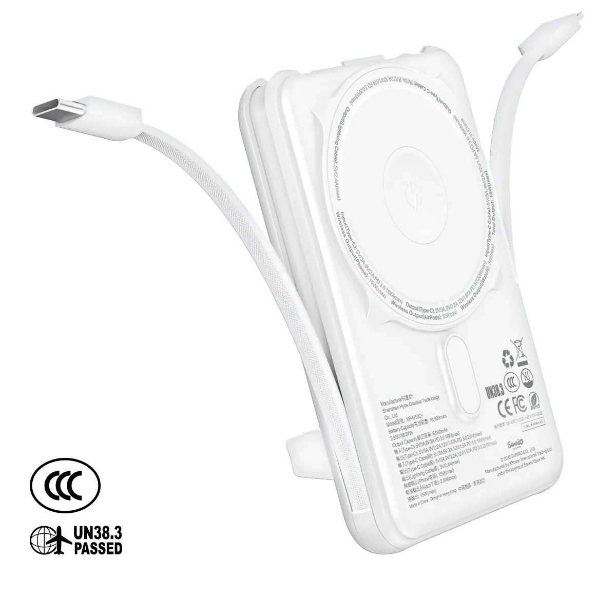 •雙內置充電線:PD Type-C(20W PD3.0輸出/18W PD3.0輸入)+Lightning(12W)