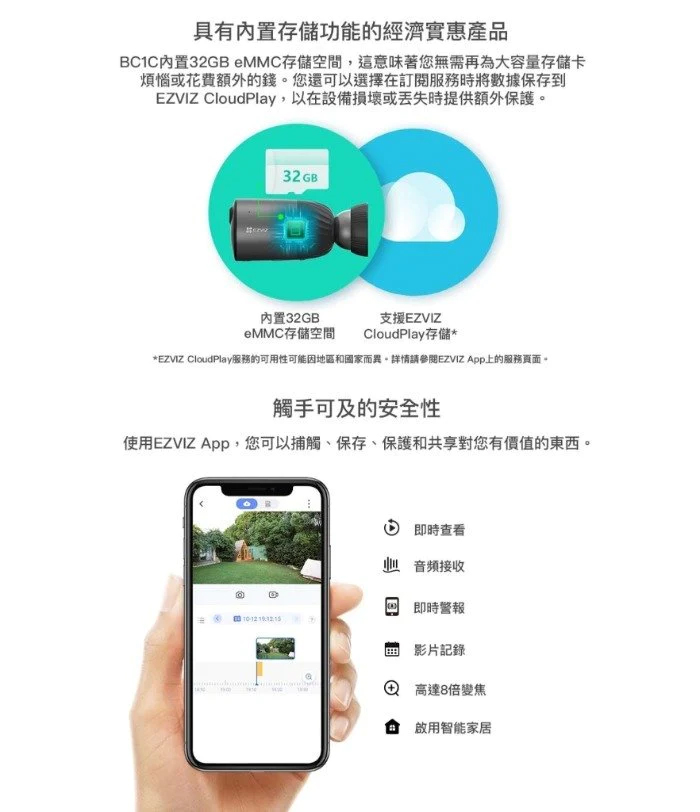 - 可配合EZVIZ太陽能板支援攝錄機充電