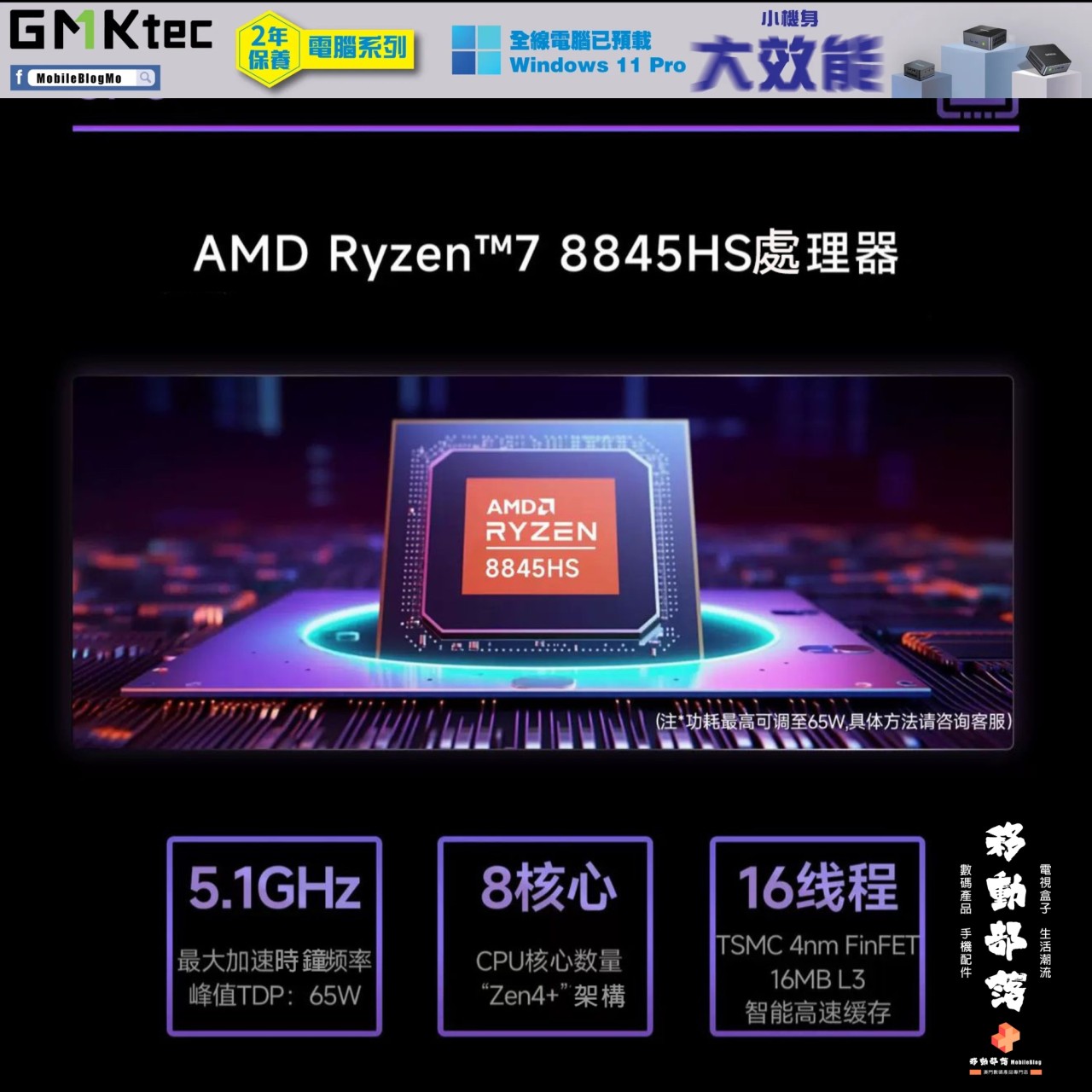 ⚡ 強大性能:AMD Ryzen 7 8845HS 處理器,8核心16線程,暢玩遊戲、剪輯影片、多工無壓力!
