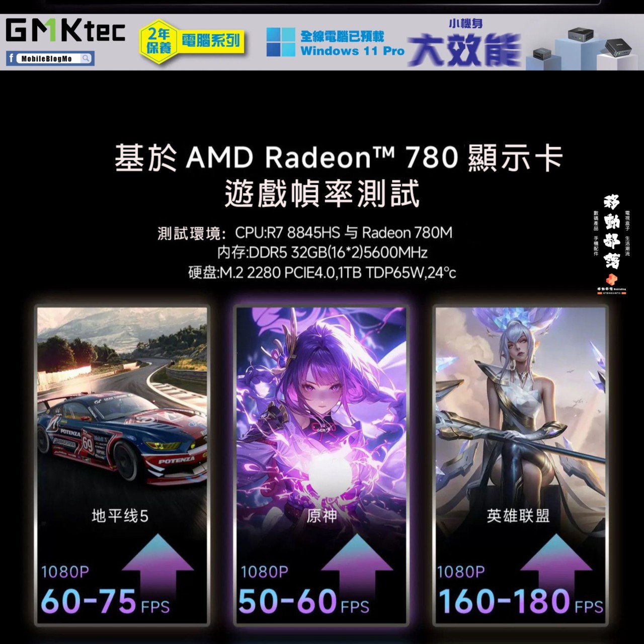 🎮 遊戲利器:Radeon 780M 顯示核心,支援 4K/8K 輸出,LOL 228+ FPS,隨時開戰!