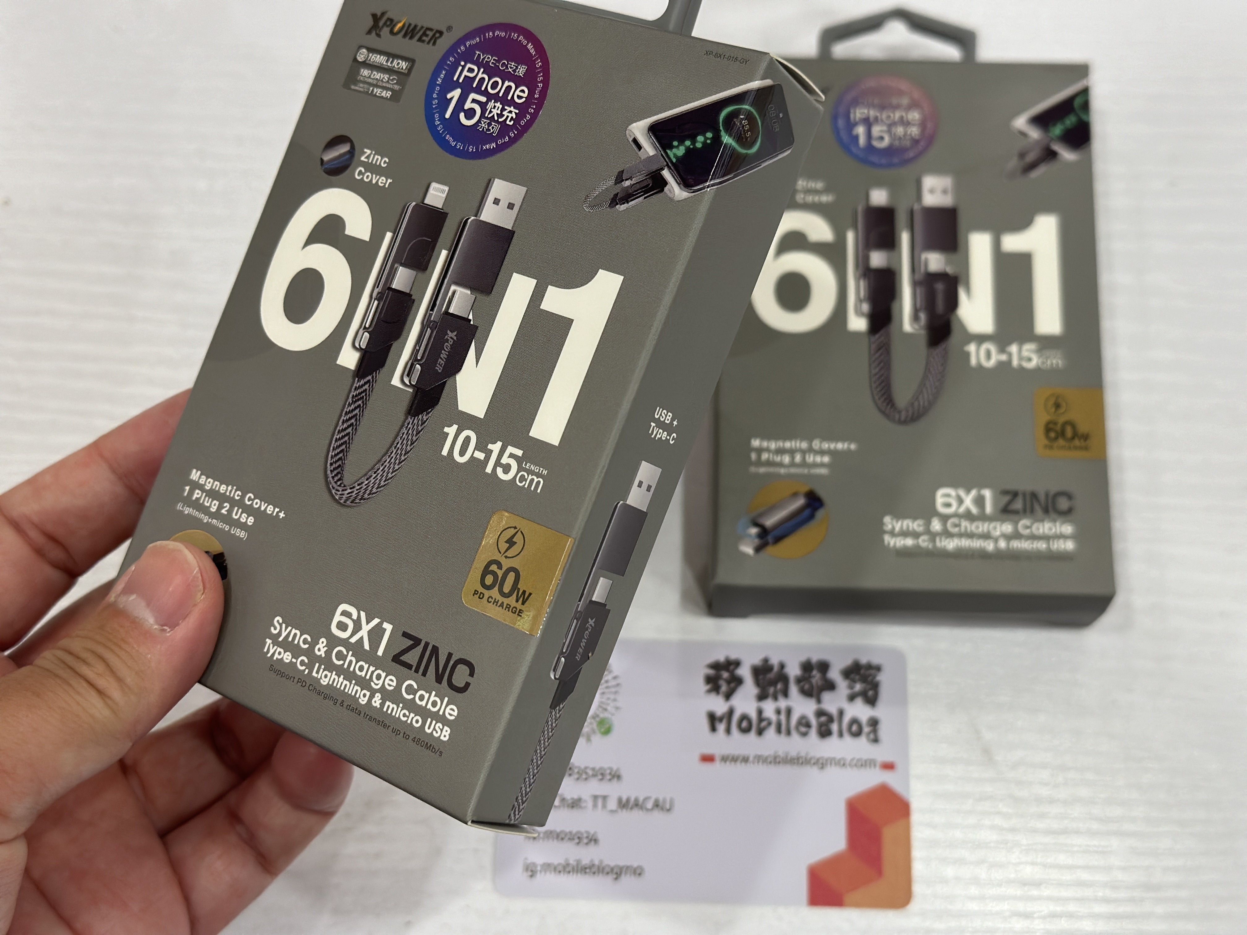 •6合1設計: Type-C, USB-A,Lightning+Micro USB(1頭2用)