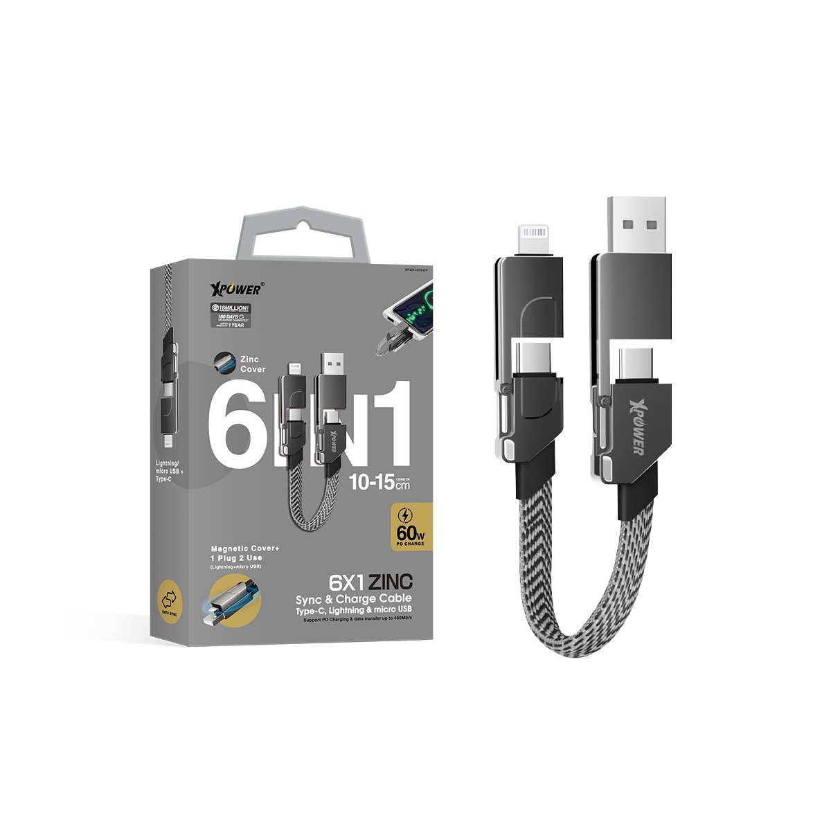 6X1 6合1 60W PD3.0鋅合金傳輸充電短線