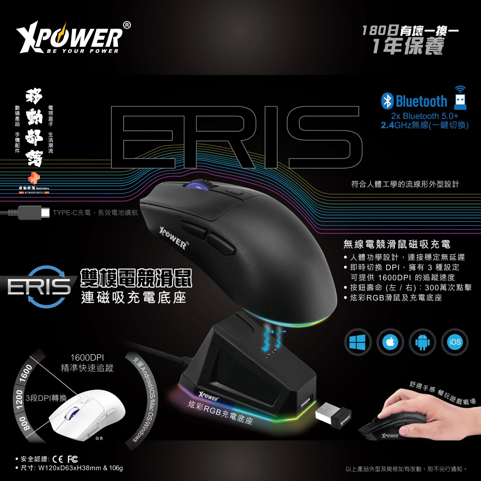 XPower ERIS 雙模電競鼠標連磁吸充電底座