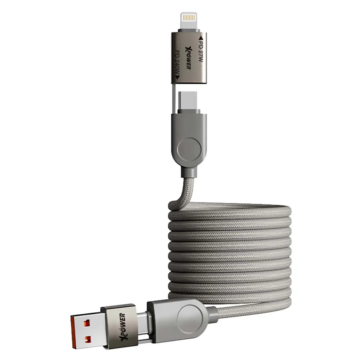XPower MF240 1.2M 磁吸收納 4合1鋅合金 240W高速傳輸充電線