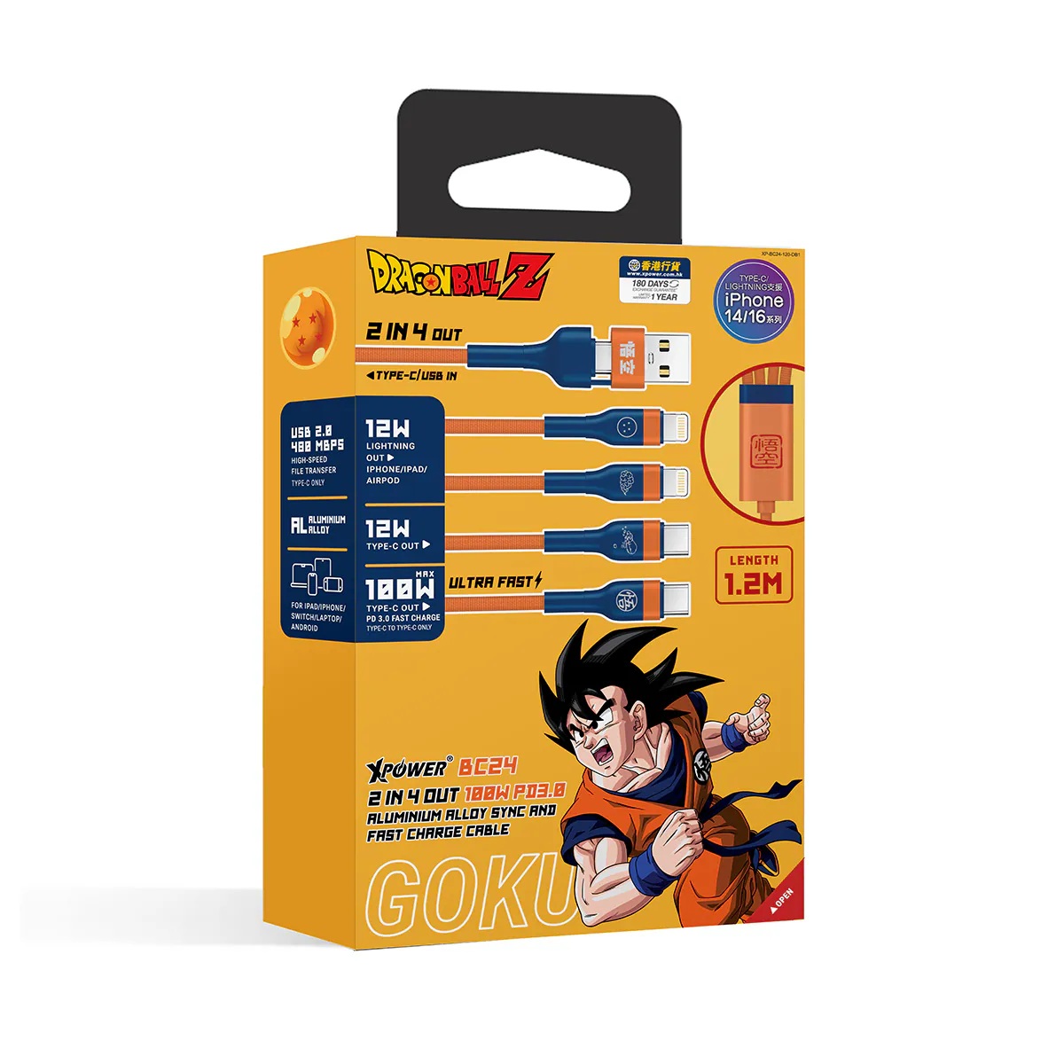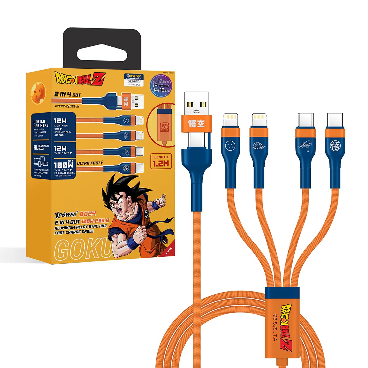 XPower x 龍珠Z BC24 8合1 2出4 100W PD3.0鋁合金傳輸高速充電線